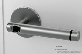 指紋鎖門把手(Grabit Door Handle),指紋鎖安裝在門把手的頭部,于是,開門的時候正好可以將大拇指放在那個位置,一次到位,完成指紋解鎖和按下門把手進門的動作。