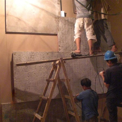 干掛法又名空掛法。是當(dāng)代飾面飾材裝修中一種新型的施工工藝。該方法以金屬掛件將飾面石材直接吊掛于墻面或空掛于鋼架之上,不需再灌漿粘貼。