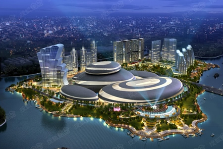 位于紹興鑒湖-柯巖旅游渡假區,總投資約80億元,總用地面積約39萬平方米,總建筑面積約100萬平方米。由以商務辦公、酒店式公寓和五星級酒店為主的商業區,以室內山館和水館為主題,包括A、B、C、D、