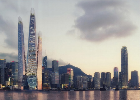 英國工作室WestonWilliamson公布了三棟彼此連接一起的摩天樓方案,該項目地處香港,大樓位于維多利亞港的新高鐵線上方。建筑師對這棟高層綜合體的構想為一簇高達440m的高塔排列在景觀廣場上